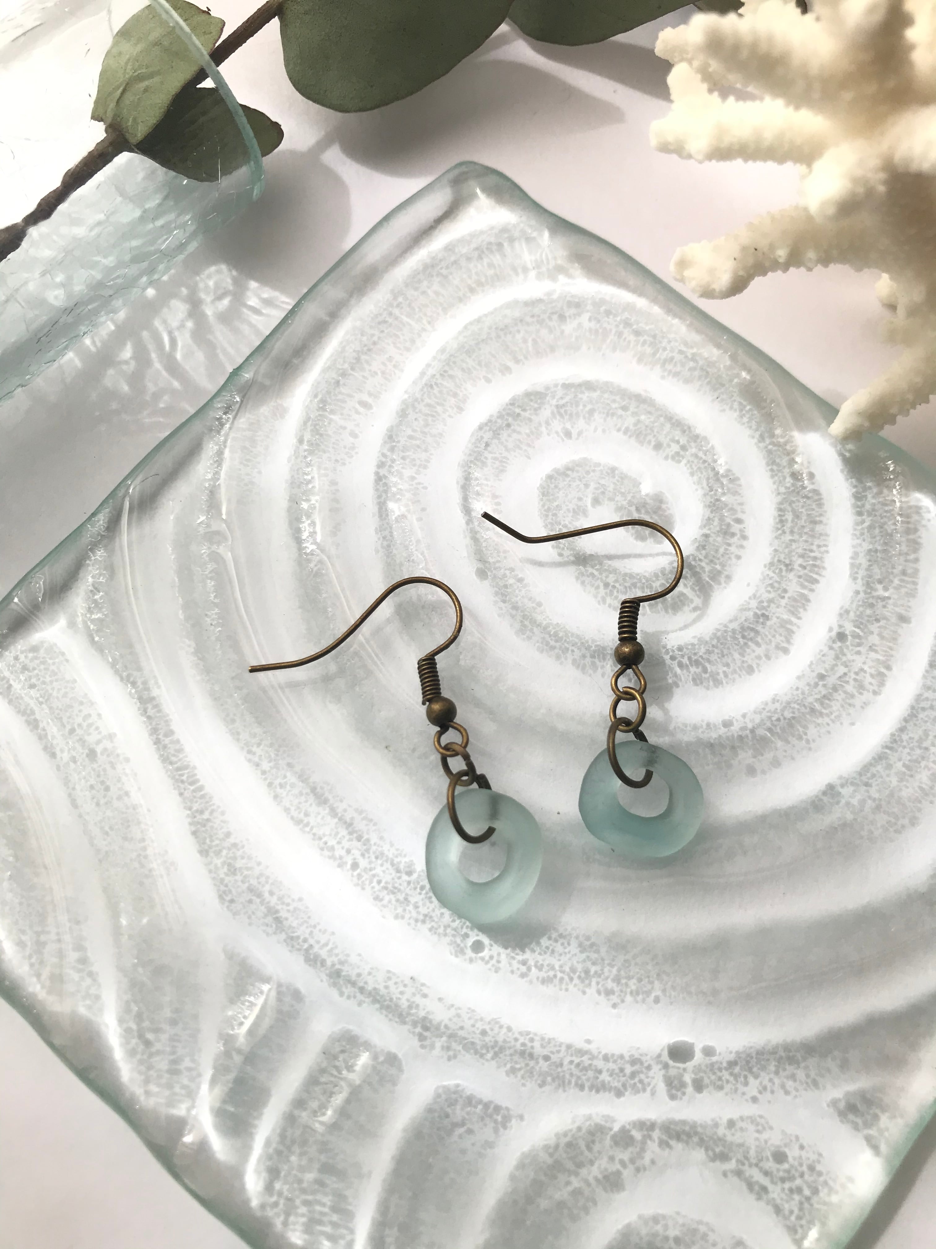 こちらは、シーグラスの形はそのままで穴を大きく開け輪っかにしたものです。