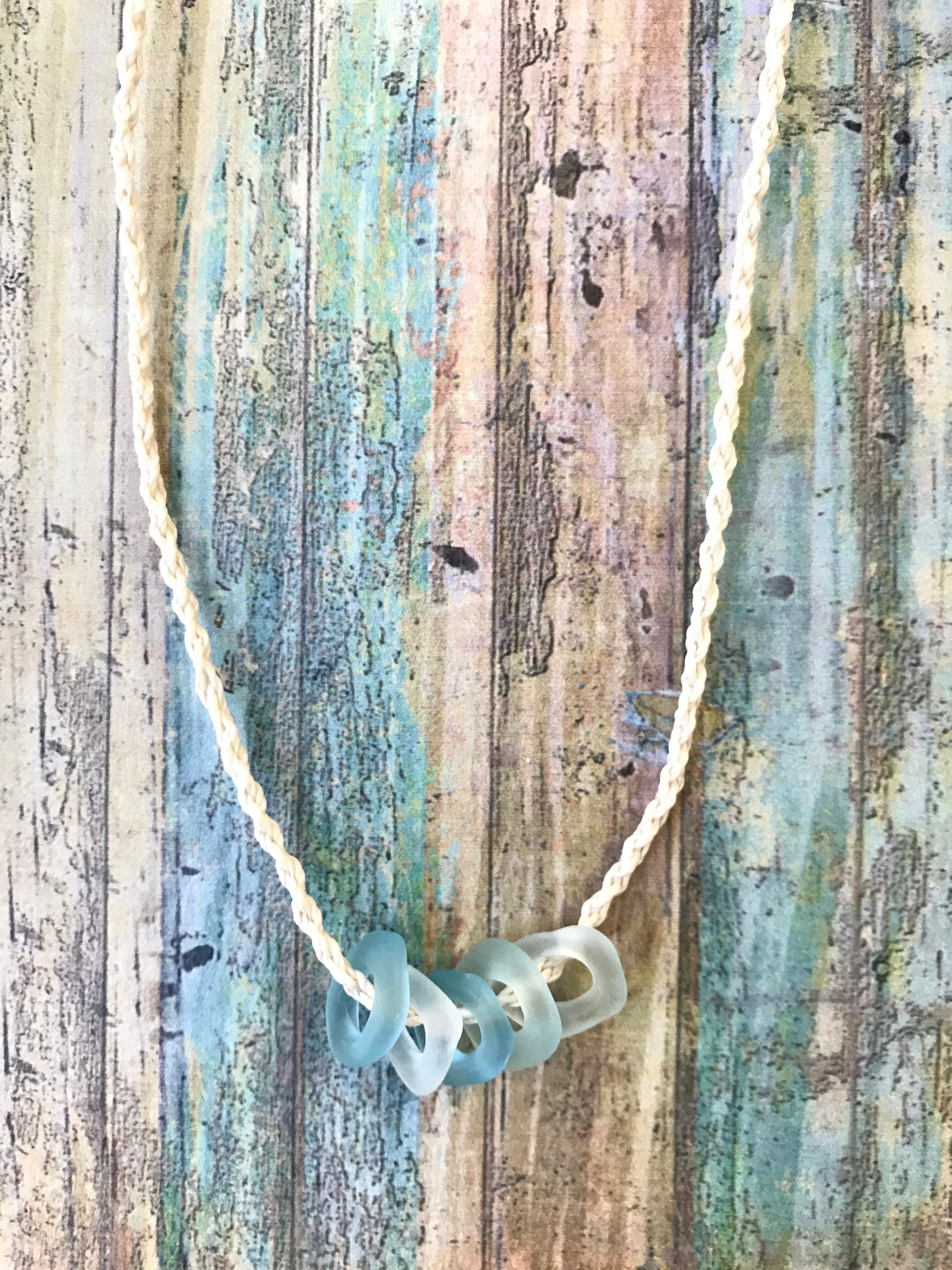 輪っかシーグラスネックレス 水色白グラデーション五つの輪っか
