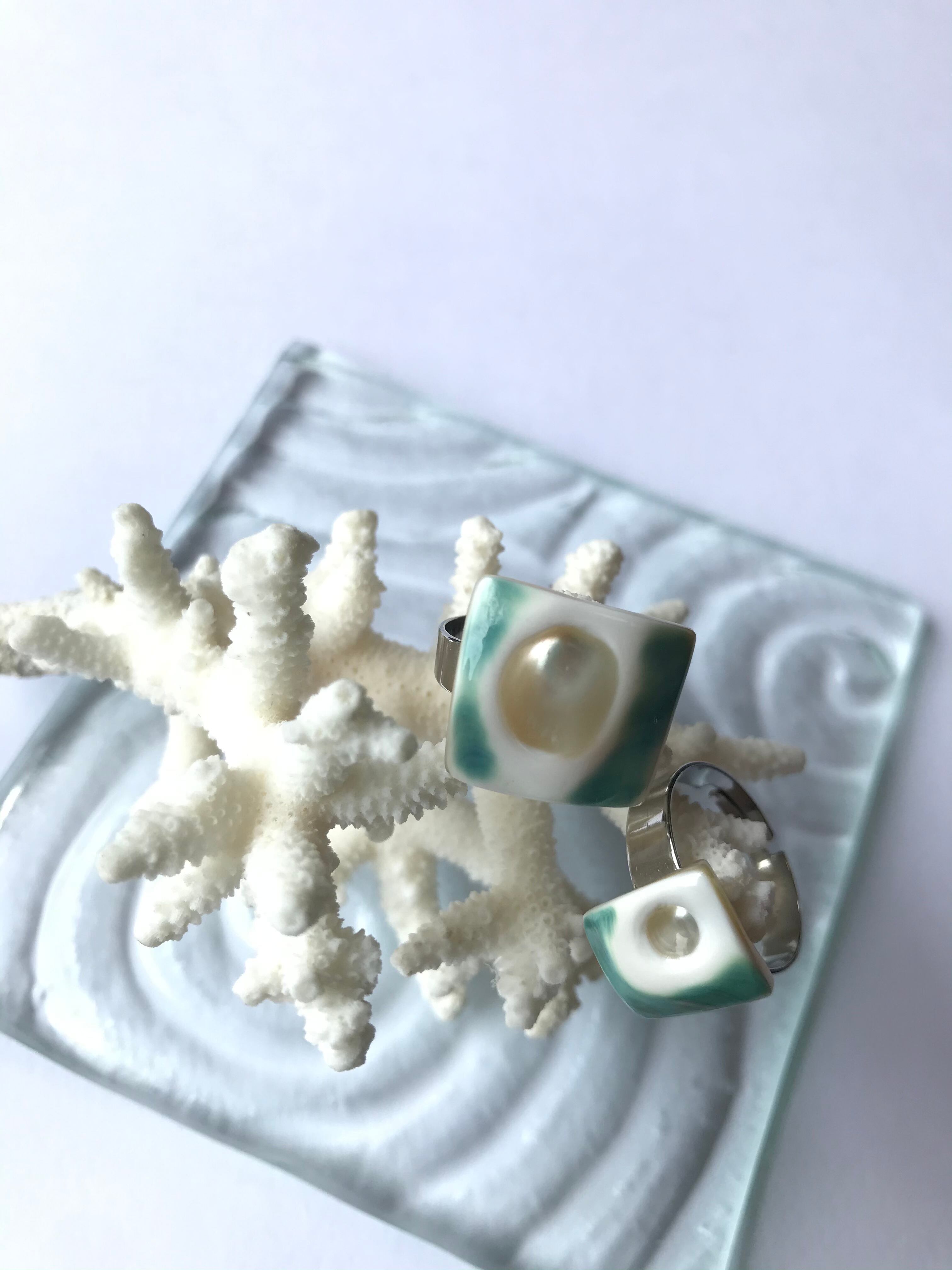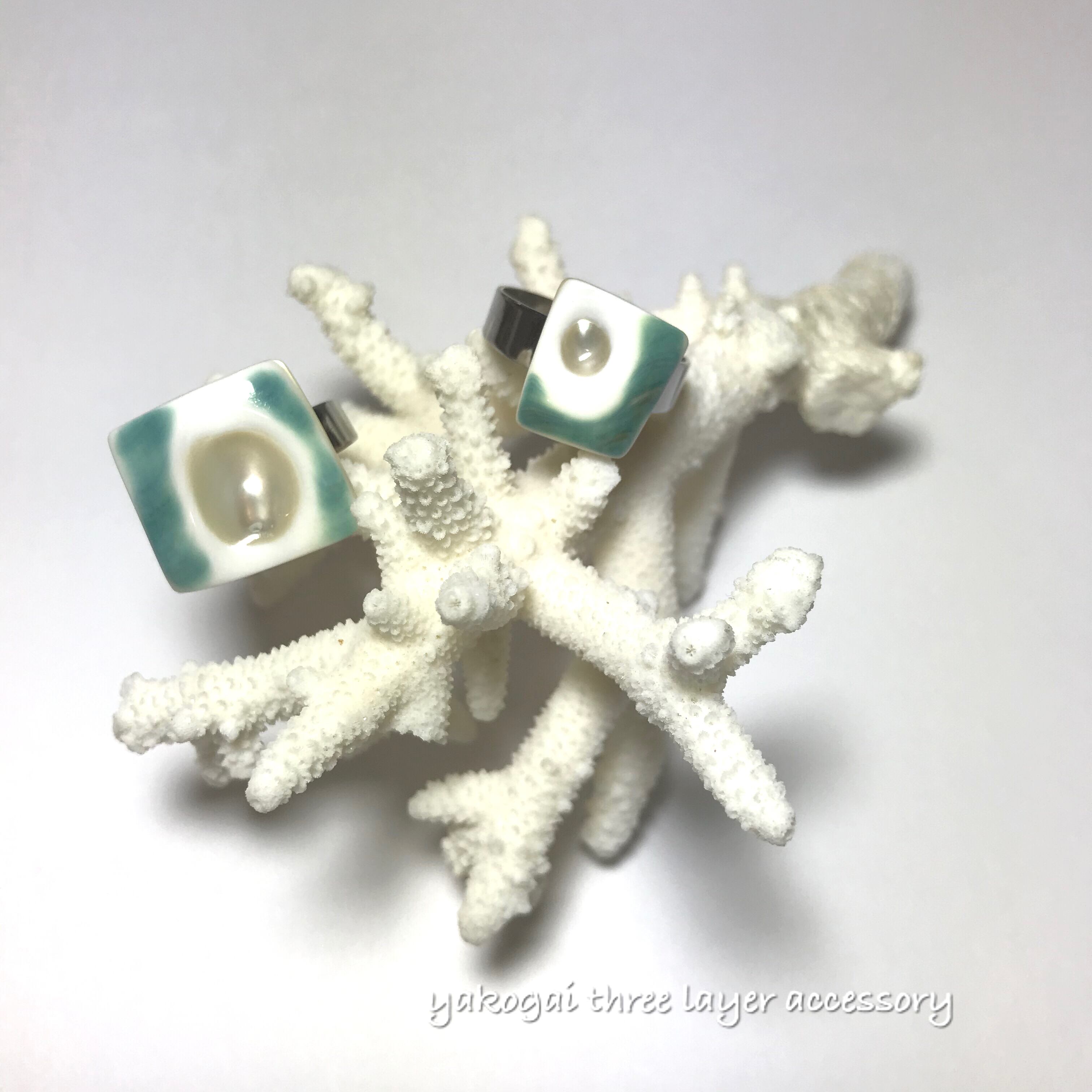 夜光貝の層(ブルー、ミルキー、パール)を生かしたデザインとなっています。