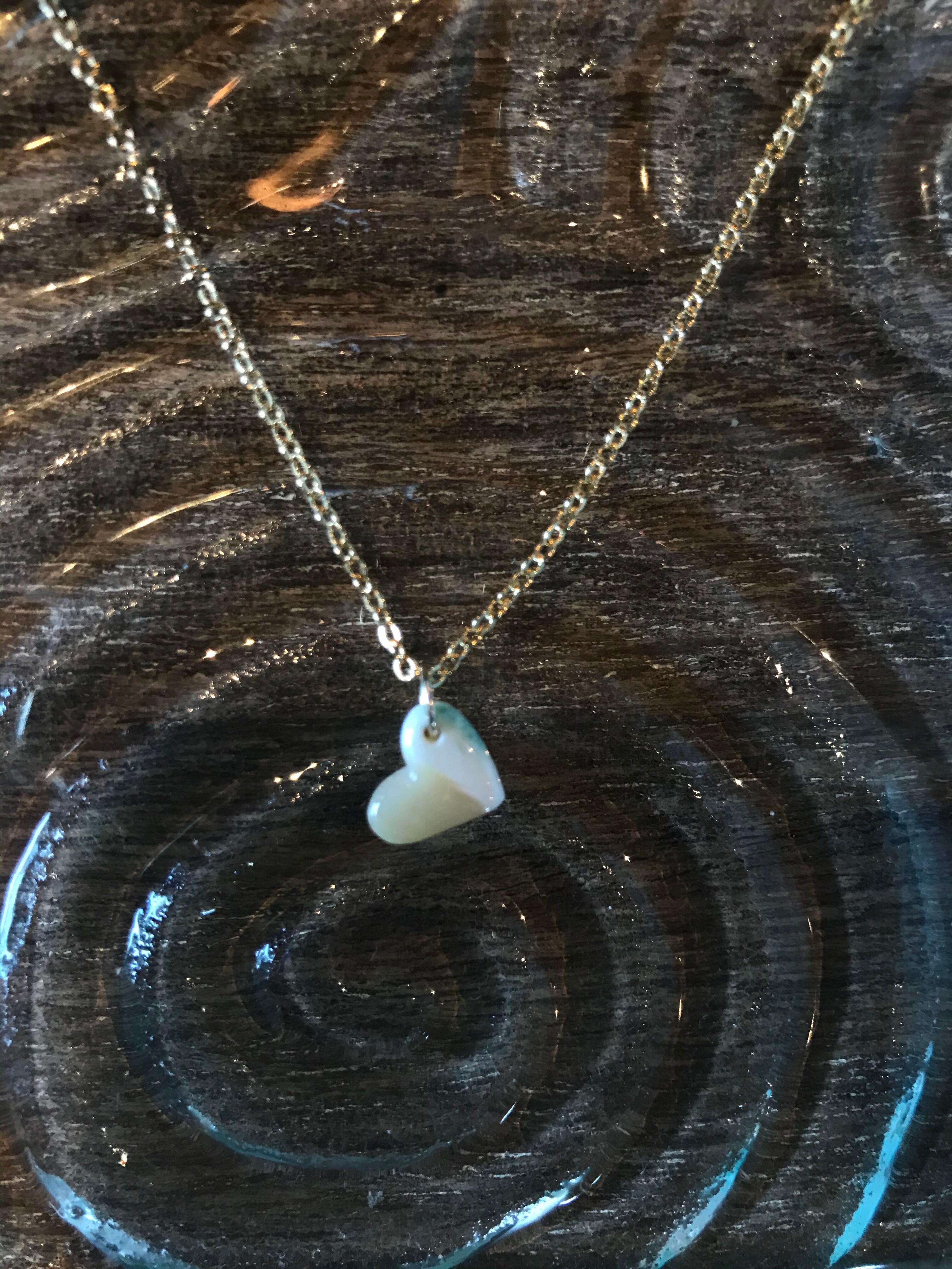 14kgf 夜光貝ハートプチネックレス アクセサリー磨き付き 海を感じるアクセサリー