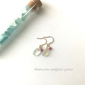 小さな小さな一粒シーグラスと宝石質のピンクサファイアをアクセントにしたプチピアスです。
