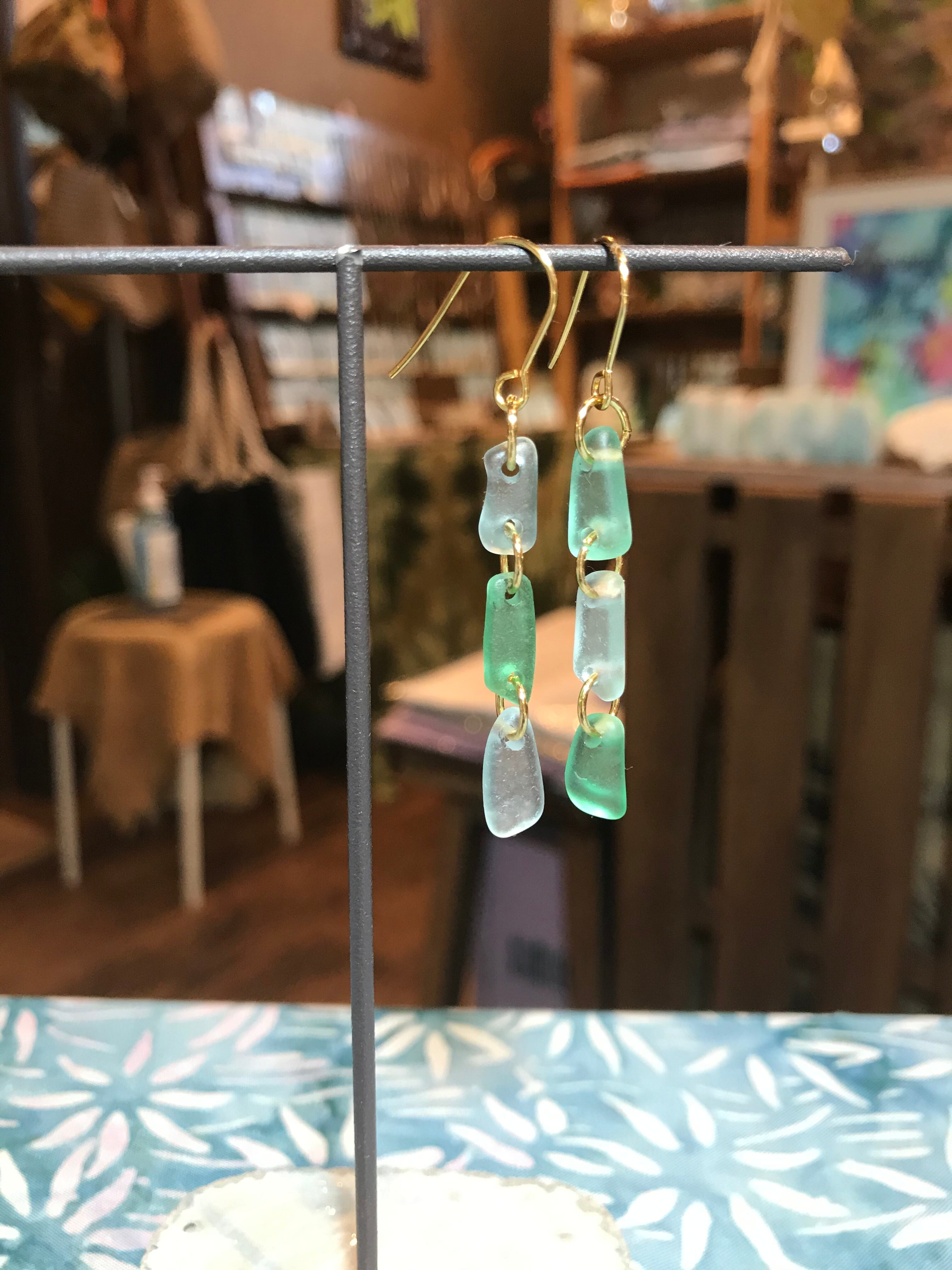 こちらは、小さめ長方形のシーグラスを3つ連結したアクセサリーです。