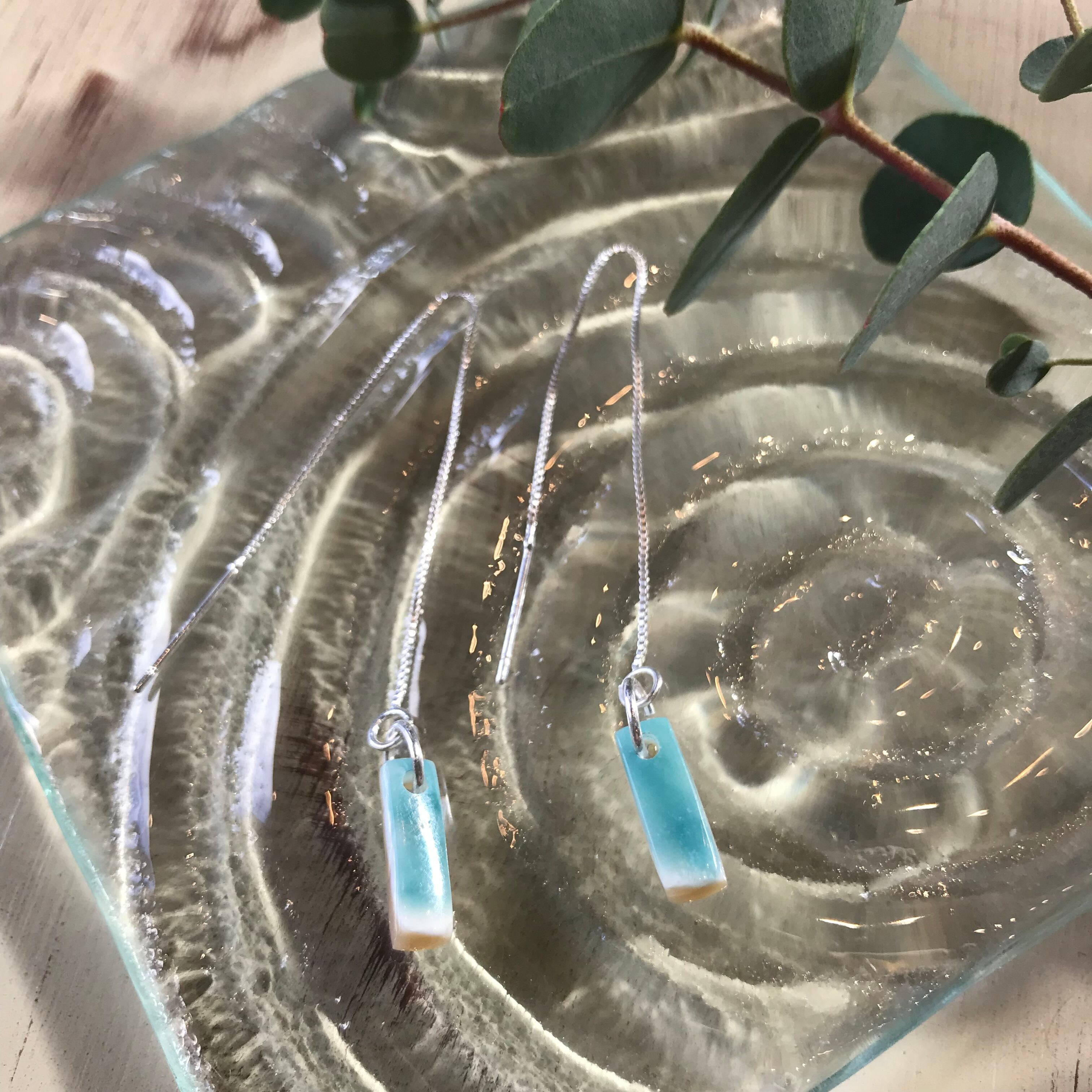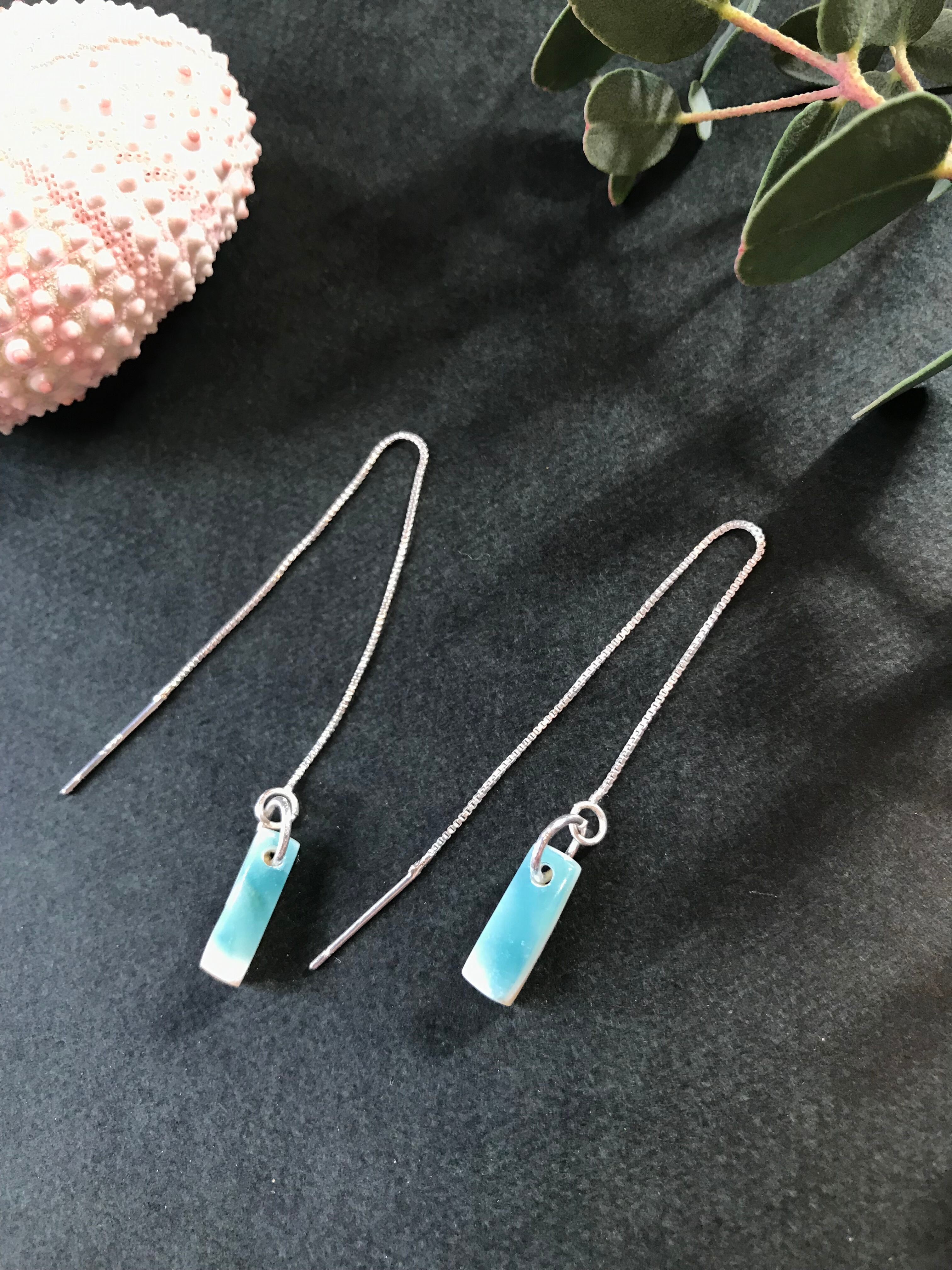 沖縄の夜光貝を細長くカットし、丁寧に磨きを重ねつややかに輝くアクセサリーを作成しました。